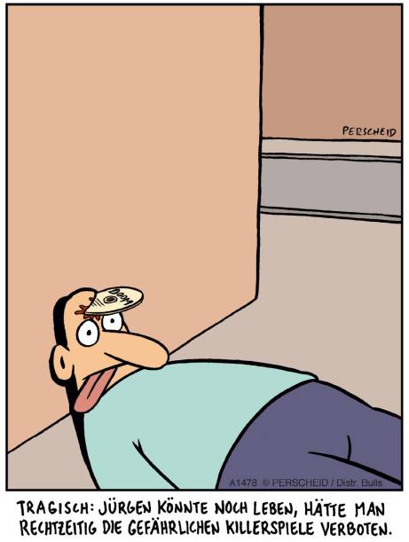 Also hatten sie inzwischen soviel gesunden Menschenverstand um das Wort "virtuell" beim "ermorden von Menschen" einzufügen. Aber irgendwie wirkt das jetzt immer noch komisch, eigentlich sogar mehr als vorher. Als nur die Rede von "Spielen die dazu dienen Menschen zu ermorden" gesprochen wurde, waren eventuell ein paar Leute irritiert wie man mit Computerspielen Menschen ermorden kann. Gut, es sei denn, man benutzt die PERSCHEID-Methode.